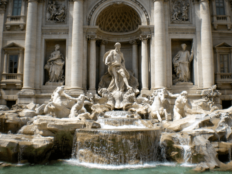 Trevi Çeşmesi ya da bilinen adıylaAşk Çeşmesi, Roma’nın en ünlü yapılarından. Yapımına 1732 yılında başlanan ve çok sayıda sanatçının yardımı ile tamamlanan çeşme oldukça etkileyici. Dilek tutup çeşmeye para atmak ise oldukça popüler. İnanışa göre kim dilek diler ve sağ eli ile sol omzunun üzerinden çeşmeye bozuk para atarsa o kişinin dileği gerçekleşir ve Roma’ya tekrar gelirmiş. Burası da görmeniz gereken yerlerden biridir.
